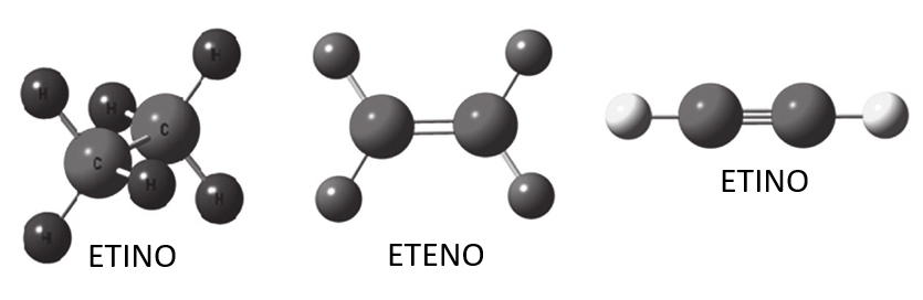 | Alchini | CnH2n−2 | HC≡CH | Etino (acetilene) | C2H2 | HC≡CH |
