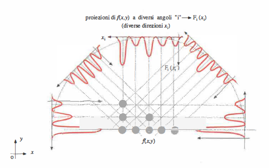 - TC: f(x,y) rappresenta il coefficiente di attenuazione dei raggi X lungo la direzione di proiezione x;