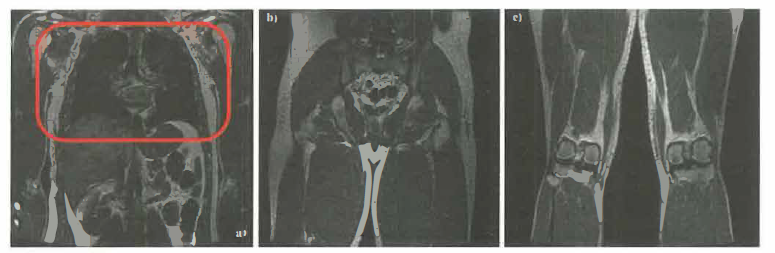 La flessibilità dei parametri di sequenza permette pesature differenti (T₁, T₂, densità protonica) e applicazioni avanzate: diffusione (DWI), perfusione, imaging funzionale BOLD, angiografia senza mezzo di contrasto, e spettroscopia ¹H‑MRS per metaboliti selezionati. Esempi di immagini cliniche sono illustrati in (Figura 07.28-23); un sistema RM a corpo intero è mostrato in (Figura 07.28-24).