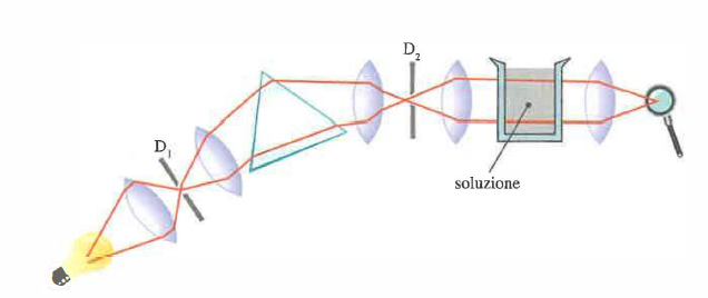 - dispositivo disperdente, nel caso in (Figura 07.43-01) un prisma che seleziona la \(\lambda\) desiderata;