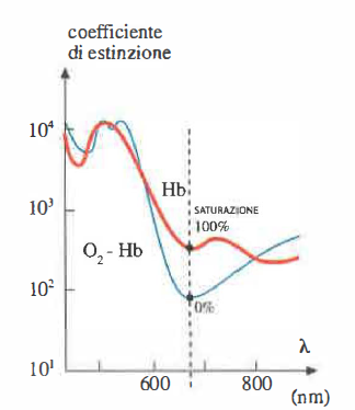 La misura non invasiva della quota di ossiemoglobina in un distretto vascolarizzato, come il lobo dell’orecchio, è alla base dell’ossimetria: l’assorbimento a due lunghezze d’onda scelte in modo da discriminare ossiemoglobina e deossiemoglobina consente di stimare l’indice di saturazione in ossigeno, parametro funzionale dell’efficienza cardiorespiratoria. In condizioni operative appropriate, la stima si fonda sul confronto tra trasmittanze pulsate attraverso il tessuto, minimizzando l’influenza delle componenti statiche.