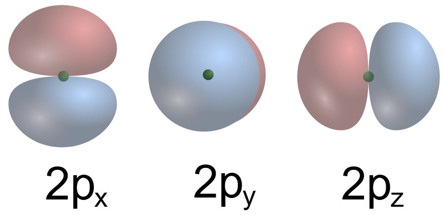 OrbitaliRappresentazione dei tre orbitali p: px, py e pz.