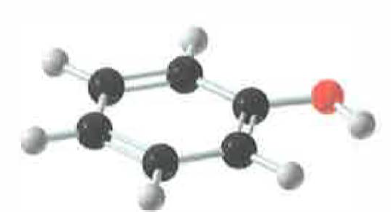 | Struttura del fenolo, capostipite della famiglia dei fenoli. |