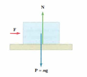 Per il contatto tra superfici solide si distinguono due contributi principali: attrito statico e attrito dinamico (o cinetico). La configurazione di riferimento è schematizzata in (Figura 02.16-02), con peso \(P\) e reazione vincolare normale \(N\).