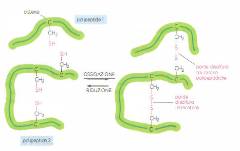 In citosol, la formazione di S–S è sfavorita dall’ambiente fortemente riducente (rapporto elevato GSH/GSSG), per cui i gruppi tiolici della cisteina rimangono prevalentemente in forma –SH. Non sorprende quindi che le proteine citosoliche non necessitino di tali rinforzi, mentre compartimenti più ossidanti, come lume del reticolo ed endomembrane o il periplasma batterico, promuovono la maturazione di ponti disolfuro. Oltre ai disolfuri, esistono altri legami crociati rilevanti: tra essi, i ponti catalizzati da lisil ossidasi nelle fibrille di collagene e i legami ε-(γ-glutamil)–lisina mediati da transglutaminasi, che aumentano la resistenza dei tessuti;