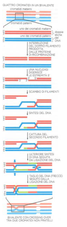 - ricombinazione con formazione di chiasmi, essenziale per la coesione funzionale e la corretta disgiunzione degli omologhi;