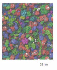 Le proteine, più voluminose, diffondono più lentamente; di conseguenza, la frequenza di incontro tra un enzima e il suo substrato dipende fortemente dalla concentrazione del substrato. Per concentrazioni intracellulari dell’ordine di 0,3 mM, a fronte di una concentrazione dell’acqua di circa 55,5 M, si ha all’incirca una molecola di substrato ogni ~2·10⁵ molecole di H₂O; ciononostante, un singolo sito attivo può essere colpito casualmente da \(10^5\)–\(10^6\) molecole di substrato al secondo. Per una concentrazione dieci volte inferiore (0,03 mM), il numero di collisioni resta dell’ordine di \(10^4\)–\(10^5\) s⁻¹. Questi tassi elevati sostengono velocità catalitiche tipiche dell’ordine di \(10^3\) s⁻¹ per molti enzimi.