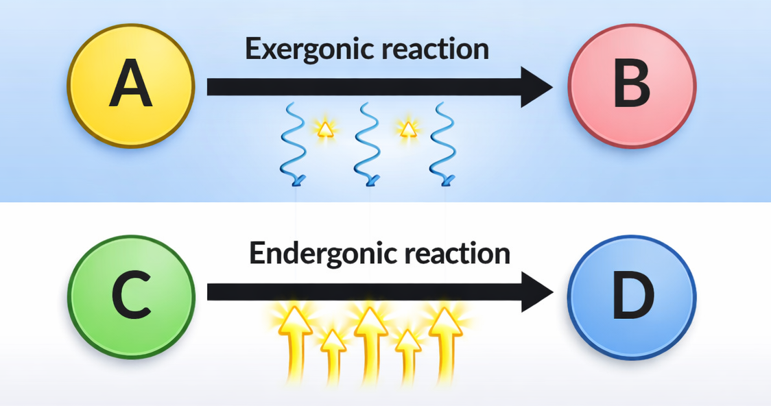 Supponiamo che \(A + B \rightarrow AB\) abbia \(\Delta G^\circ' = +20,0\,\mathrm{kJ\,mol^{-1}}\). Se accoppiamo la reazione all’idrolisi di ATP, con \(\mathrm{ATP} + \mathrm{H_2O} \rightarrow \mathrm{ADP} + \mathrm{P_i}\) e \(\Delta G^\circ' \approx -30,5\,\mathrm{kJ\,mol^{-1}}\), l’insieme risulta: \[ \Delta G^\circ'_\text{complessivo} = +20,0 - 30,5 = -10,5\,\mathrm{kJ\,mol^{-1}}, \] quindi favorito. In pratica, l’accoppiamento avviene tramite la formazione di intermedi “attivati” (per esempio, un intermedio fosforilato) che collegano strettamente i due eventi chimici, spesso all’interno dello stesso sito attivo enzimatico.