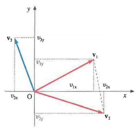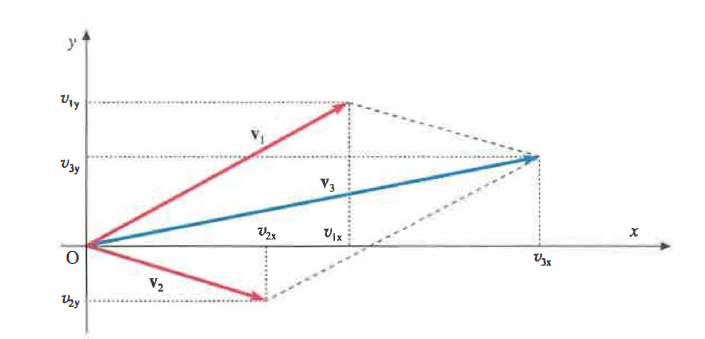 \[ \begin{cases} v_{3x} = v_{1x} + v_{2x} \\ v_{3y} = v_{1y} + v_{2y} \\ v_{3z} = v_{1z} + v_{2z} \end{cases} \]