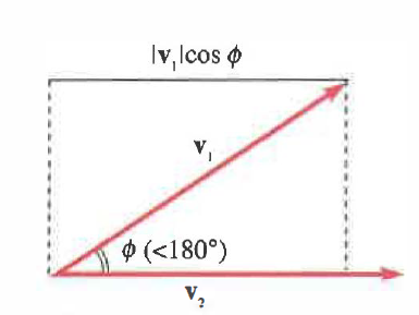 \[ \mathbf{v}_{1} \cdot \mathbf{v}_{2} = v_{1}\, v_{2}\, \cos \phi \]