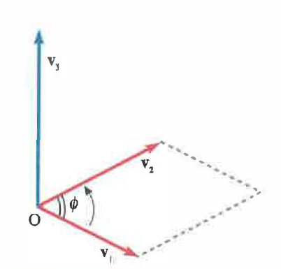\[ |\mathbf{v}_{3}| = v_{1}\, v_{2}\, \sin \phi \]