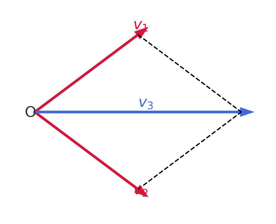 Nel riferimento tridimensionale, indicando con \(v_{1x}, v_{1y}, v_{1z}\) e \(v_{2x}, v_{2y}, v_{2z}\) le componenti di \(\mathbf{v}_{1}\) e \(\mathbf{v}_{2}\), la somma \(\mathbf{v}_{3}\) ha componenti: