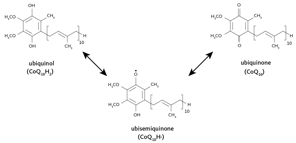 I tre grandi complessi enzimatici della catena respiratoria contengono numerosi centri redox legati in modo stabile alle proteine. In questi centri, l’elettrone procede per “salti” tra siti metallici adiacenti con affinità crescente, seguendo il gradiente di potenziale redox. La coordinazione del metallo nel sito attivo, l’ambiente proteico e la distanza/geomentria tra i centri determinano la velocità e la direzionalità del trasferimento. Il passaggio tra complessi adiacenti è affidato a trasportatori mobili che diffondono all’interno della membrana o nello spazio intermembrana, prelevando elettroni da un complesso e cedendoli al successivo con precisa specificità. Nella catena respiratoria mitocondriale, l’ubichinone (coenzima Q), molecola isoprenoide fortemente lipofila, riceve elettroni dal complesso della NADH deidrogenasi e li conferisce al complesso della citocromo c reduttasi. Un chinone con funzioni analoghe opera anche nella fotosintesi. L’ubichinone può accettare uno o due elettroni; la forma completamente ridotta, l’ubichinolo, incorpora in modo concertato due protoni provenienti dalla matrice, contribuendo al bilancio protonico della membrana (Figura 05.13-02). Il suo potenziale redox intorno a +30 mV lo colloca, in termini energetici, tra la NADH deidrogenasi e la citocromo c reduttasi, spiegando la direzione del trasferimento (Figura 05.13-03). Oltre che dal NADH attraverso il complesso I, l’ubichinone può ricevere elettroni direttamente dal FADH₂ generato nel ciclo dell’acido citrico e dall’ossidazione degli acidi grassi. I potenziali redox dei cofattori metallici determinano la loro posizione funzionale nella catena: