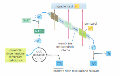 - Complesso della NADH deidrogenasi (Complesso I), che riceve gli elettroni da NADH e li convoglia all’ubichinone;