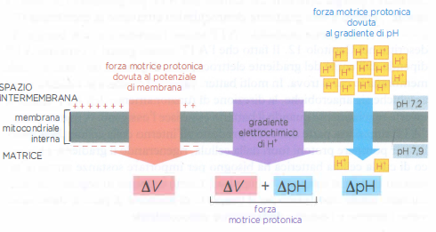 - un gradiente di concentrazione di protoni, ovvero un gradiente di pH, per cui la matrice risulta più alcalina dello spazio intermembrana;