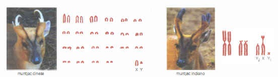 Due specie strettamente imparentate possono essere simili per quanto riguarda le dimensioni del genoma, ma avere un numero di cromosomi molto diverso. Nell’evoluzione del muntjac indiano, i cromosomi che inizialmente erano separati, e che sono rimasti separati nella specie cinese, si sono fusi senza produrre un effetto significativo sull’animale.