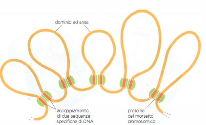 Nei cromosomi umani la cromatina è ripiegata in domini ad ansa. Questi domini sono stabiliti da speciali proteine cromosomiche non istoniche che si legano a specifiche sequenze di DNA, creando un morsetto alla base di ciascun anello.