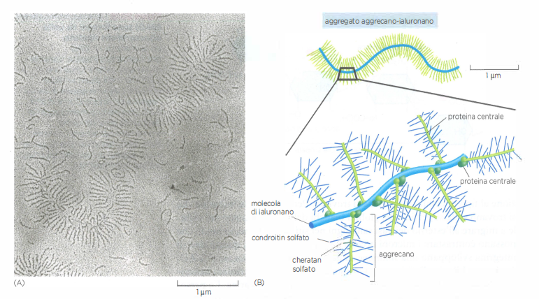 - i glicosaminoglicani e i proteoglicani, che formano gel idratati in grado di resistere alle compressioni e di regolare la diffusione di soluti;