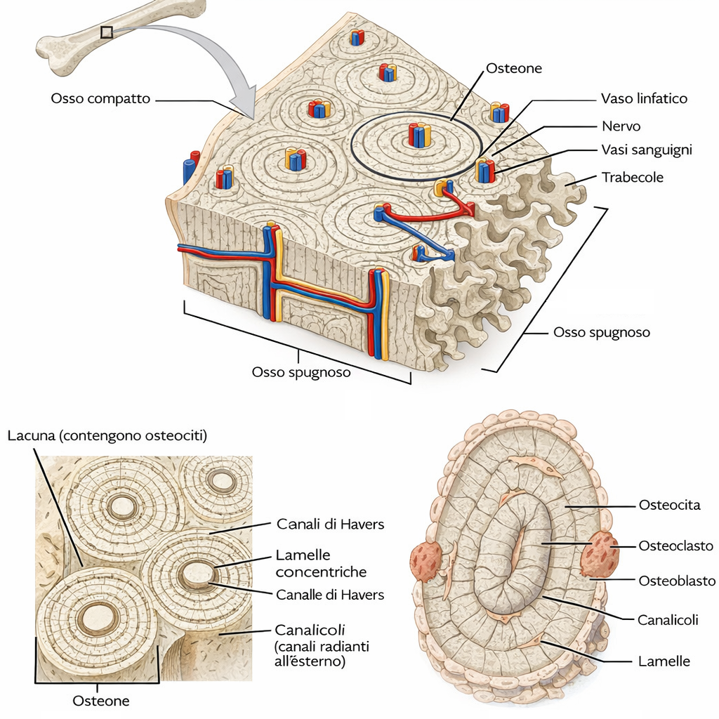 - rigidi e minerali, come l’osso, dove la matrice è impregnata di cristalli di idrossiapatite;