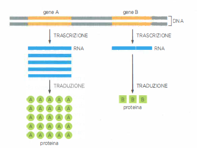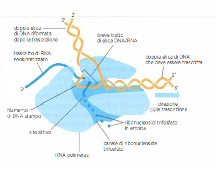 Porzioni della sequenza di DNA sono convertite in RNA