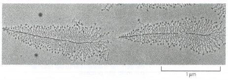 Molte molecole di RNA polimerasi possono trascrivere contemporaneamente lo stesso gene. In questa fotografia al microscopio elettronico sono mostrati due geni ribosomiali adiacenti su una singola molecola di DNA. Le molecole di RNA polimerasi sono appena visibili come una serie di puntini lungo la colonna centrale della molecola di DNA: ogni polimerasi ha un trascritto di RNA (visibile come un filo corto e sottile) che si irradia da essa. Le molecole di RNA che vengono trascritte dai due geni ribosomiali, gli RNA ribosomiali (rRNA), non sono tradotte in proteine, ma vengono utilizzate direttamente come componenti dei ribosomi, macchinari macromolecolari fatti di RNA e proteine. Le particelle di grandi dimensioni visibili all’estremità libera 5′ di ogni rRNA trascritto sono proteine ribosomiali che si sono assemblate sulle estremità dei trascritti in accrescimento. Queste proteine verranno trattate più avanti nel capitolo.
