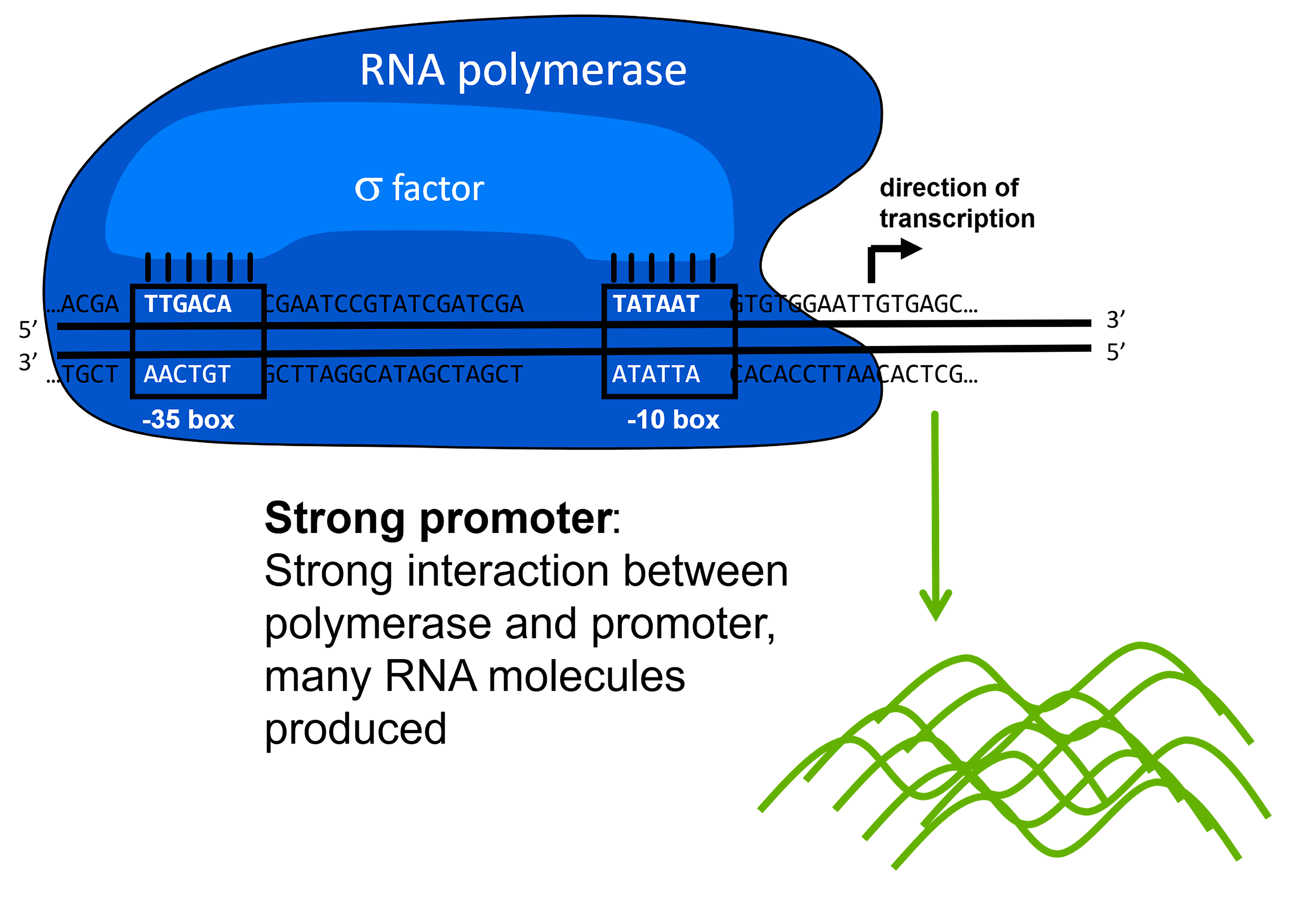 L’individuazione dei geni da trascrivere dipende da sequenze di DNA caratteristiche, come promotori che dirigono l’inizio e segnali di terminazione che arrestano l’enzima; la loro interazione con l’RNA polimerasi e i fattori accessori coordina l’efficienza di inizio, l’accuratezza e la produttività della trascrizione, e costituisce un nodo cruciale della regolazione dell’espressione genica.