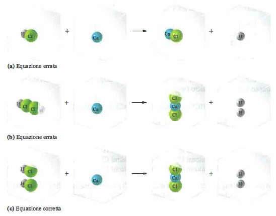Scritta in questo modo, l’equazione non è bilanciata: il cloro e l’idrogeno risultano in difetto nel membro dei reagenti. Un tentativo scorretto consisterebbe nel modificare i pedici:
