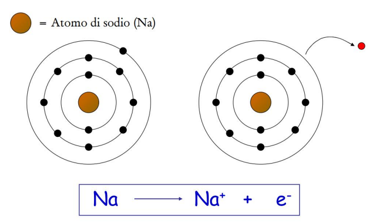 | Formazione dello ione sodio Na⁺ per perdita di un elettrone |
