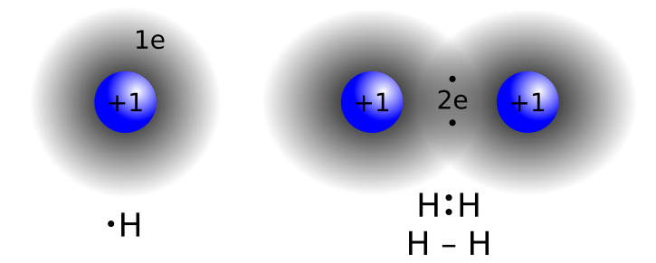 Poiché due atomi identici di H hanno la stessa tendenza ad attrarre o cedere elettroni, il trasferimento completo è improbabile in condizioni ordinarie; la condivisione di una coppia elettronica è quindi il meccanismo di stabilizzazione pertinente, come rappresentato con le strutture di Lewis.