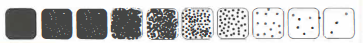 Rappresentazione visiva dei decadimenti di nuclei radioattivi dopo 10 tempi di dimezzamento: il numero di radionuclidi è ridotto di 2¹⁰ = 1024.