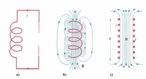 dove \(n\) è il numero di spire per unità di lunghezza, \(n = N/\ell\) con \(\ell\) lunghezza del solenoide. Un solenoide percorso da corrente si comporta come una calamita allungata; inserendo un nucleo di ferro dolce si ottiene un’elevata intensificazione del campo e una magnetizzazione del nucleo, realizzando una elettrocalamita.