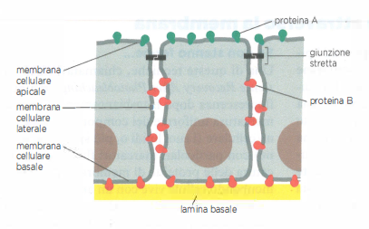 - formazione di barriere di diffusione, quali le giunzioni strette, che impediscono la migrazione laterale di lipidi e proteine attraverso confini subcellulari;