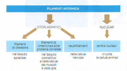 - filamenti di tipo vimentina e correlati, nelle cellule del connettivo, nelle cellule muscolari e nella glia;