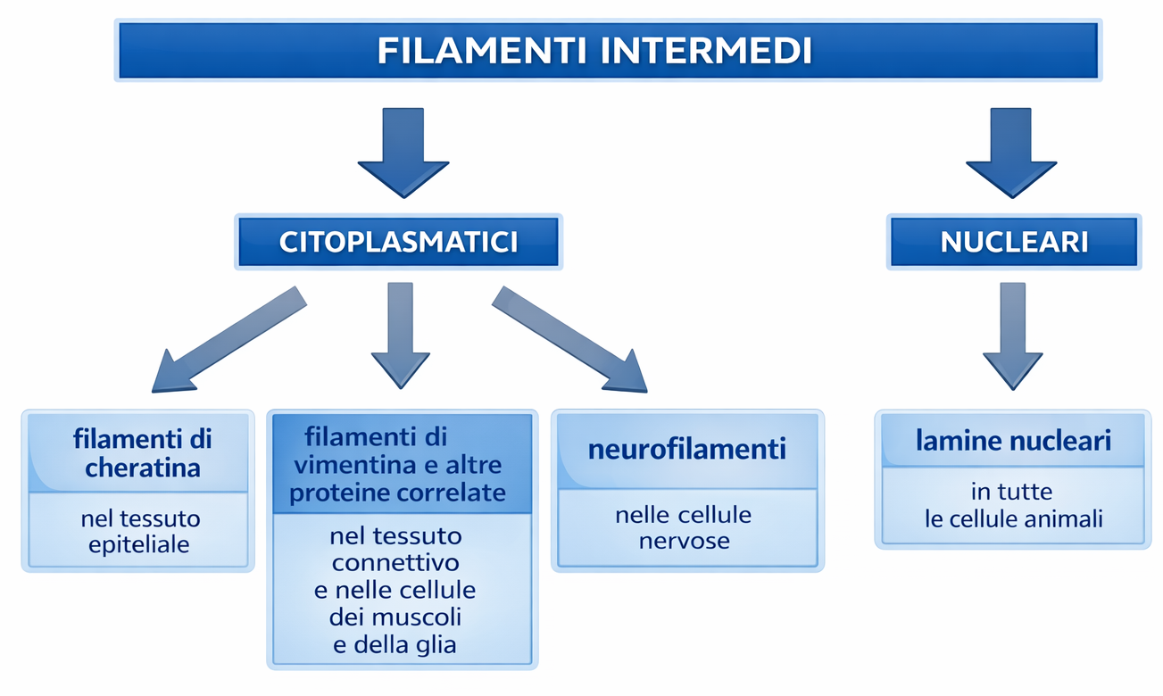 - filamenti di cheratina, caratteristici delle cellule epiteliali;