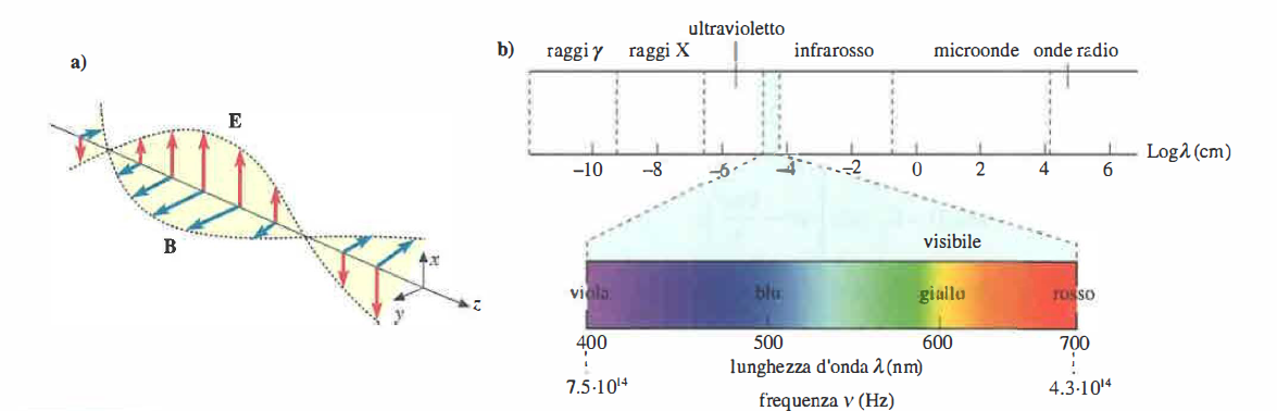 La luce appartiene alla classe dei fenomeni elettromagnetici: consiste in oscillazioni accoppiate di un campo elettrico E e di un campo magnetico B che si autosostengono durante la propagazione. A differenza delle onde elastiche, queste oscillazioni non implicano il moto di particelle materiali e non richiedono un mezzo: possono dunque attraversare anche il vuoto, dove avanzano con velocità finita, ma estremamente elevata.