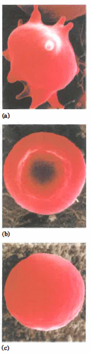Nel sangue, l’osmolarità del plasma è approssimativamente equivalente a quella di una soluzione 0,30 M di glucosio oppure a quella di una soluzione 0,15 M di NaCl, poiché il cloruro di sodio si dissocia fornendo circa il doppio di particelle rispetto a un non elettrolita a parità di molarità. I globuli rossi, aventi osmolarità simile al plasma, non mostrano variazioni di volume in una soluzione isotonica, cioè con uguale pressione osmotica efficace: in tal caso la cellula mantiene forma e dimensioni (Figura 03.04-03).
