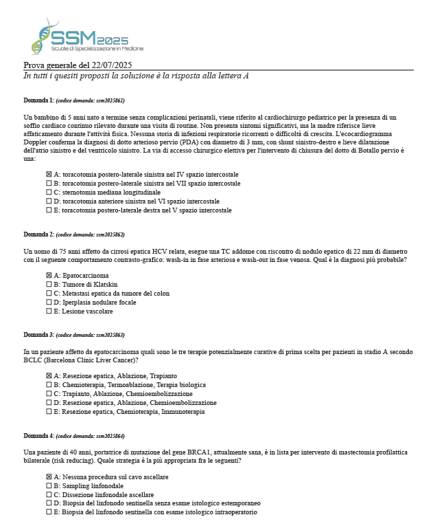 - La prova SSM 2025 si è svolta il 22 luglio con 140 quesiti a risposta multipla.