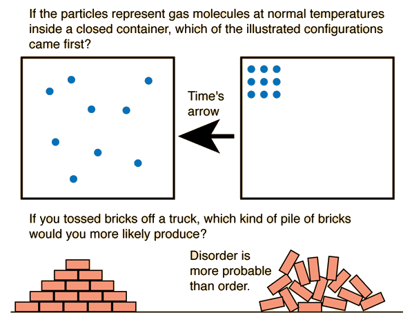 La tendenza generale verso il disordine è codificata nella seconda legge della termodinamica: in un sistema isolato l’entropia, misura del disordine o, in termini più precisi, della molteplicità delle configurazioni microscopiche accessibili, non diminuisce mai. Questa legge può essere interpretata in termini probabilistici: l’evoluzione spontanea privilegia gli stati con il numero maggiore di microstati compatibili con le condizioni macroscopiche.
