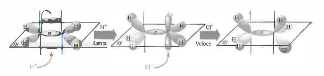 Meccanismo della reazione fra etene e HCI.