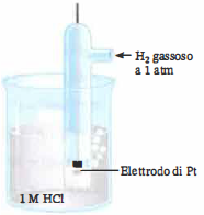 e fornisce la superficie conduttrice per lo scambio elettronico con il circuito esterno. Per definizione, in condizioni standard si assegna al potenziale di riduzione della coppia H⁺/H₂ il valore esatto di zero: