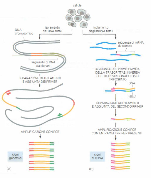Le librerie genomiche e di cDNA rimangono strumenti essenziali per clonare geni molto estesi e per il sequenziamento su larga scala; tuttavia, per numerose applicazioni il ricorso alla reazione a catena della polimerasi (PCR, Polymerase Chain Reaction) ha reso l’amplificazione e il clonaggio di regioni definite di DNA più rapide e operative in provetta. Introdotta alla fine del XX secolo, la PCR ha trasformato l’analisi degli acidi nucleici consentendo la replicazione mirata e selettiva di un segmento specifico di DNA, con un incremento esponenziale del numero di copie nel giro di un’ora circa, senza l’uso di cellule batteriche.
