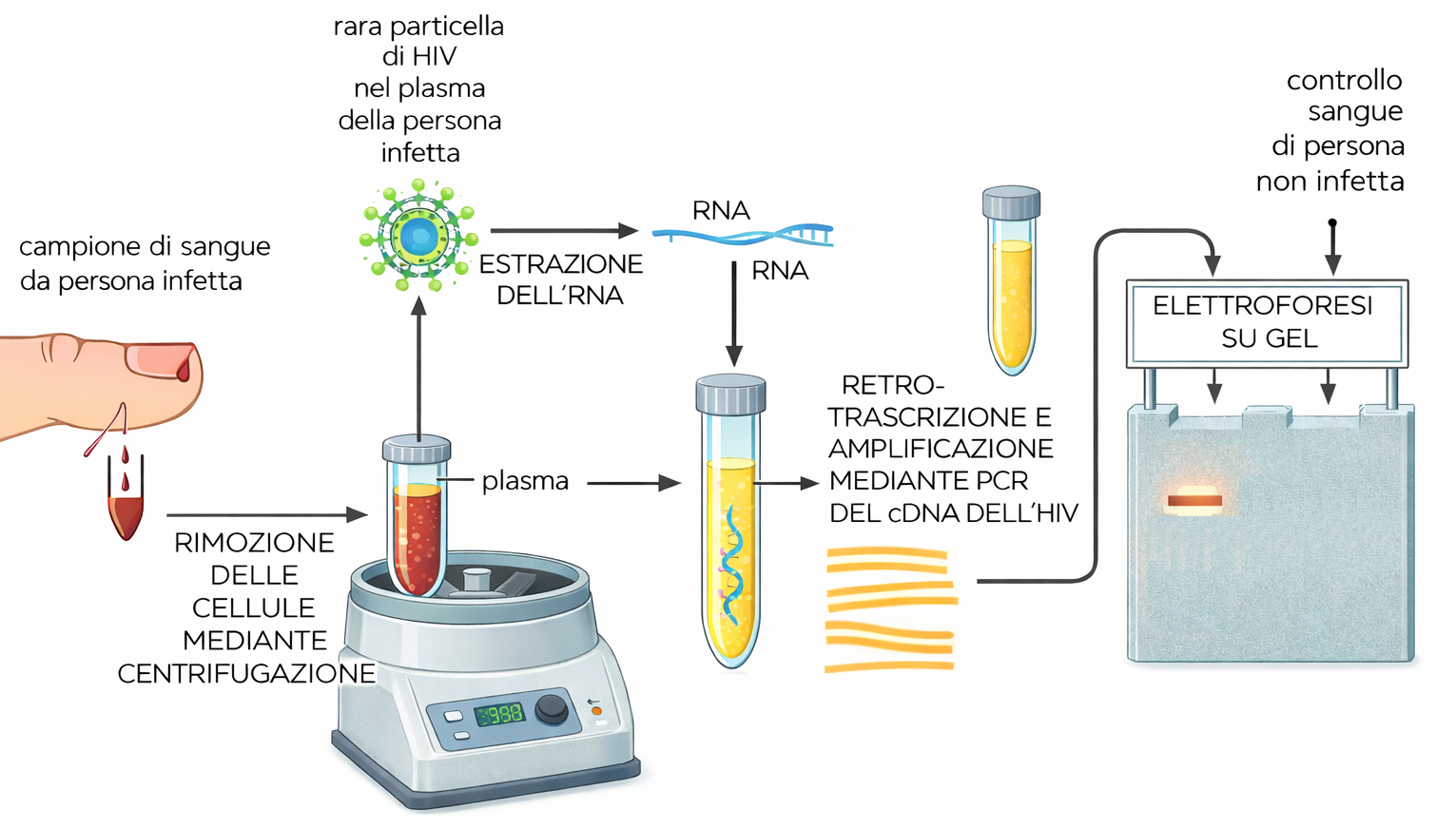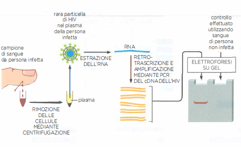 Oltre al clonaggio, la PCR è ampiamente impiegata per l’identificazione rapida di microrganismi patogeni, anche quando il carico infettivo è molto basso. Primer specifici per regioni del genoma di batteri, virus o parassiti consentono di rivelare poche copie virali o batteriche in campioni clinici dopo molteplici cicli di amplificazione (Figura 04.08-04). Varianti quantitative della tecnica, come la PCR in tempo reale, permettono di stimare la carica microbica e di monitorare la risposta a una terapia.